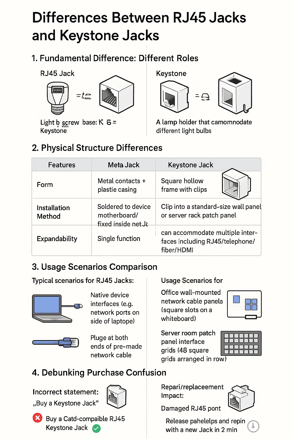 Rozdíly mezi konektory RJ45 a konektory Keystone